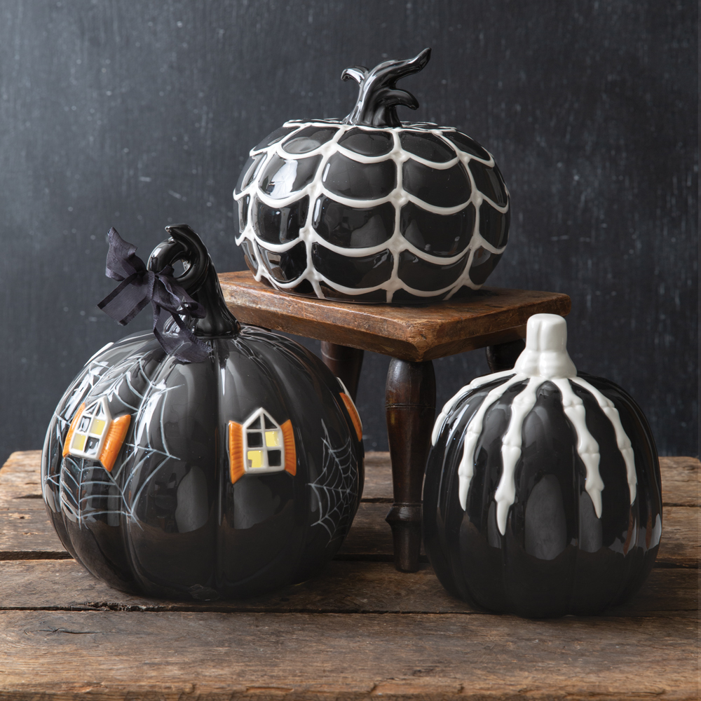 Embrace the spirit of the season with a pumpkin that transcends the ordinary. Whether placed as a centerpiece on your dining table or displayed on your mantel, this Porcelain Pumpkin Manor adds a sophisticated and bewitching ambiance to any space. This item includes three LR44 batteries.